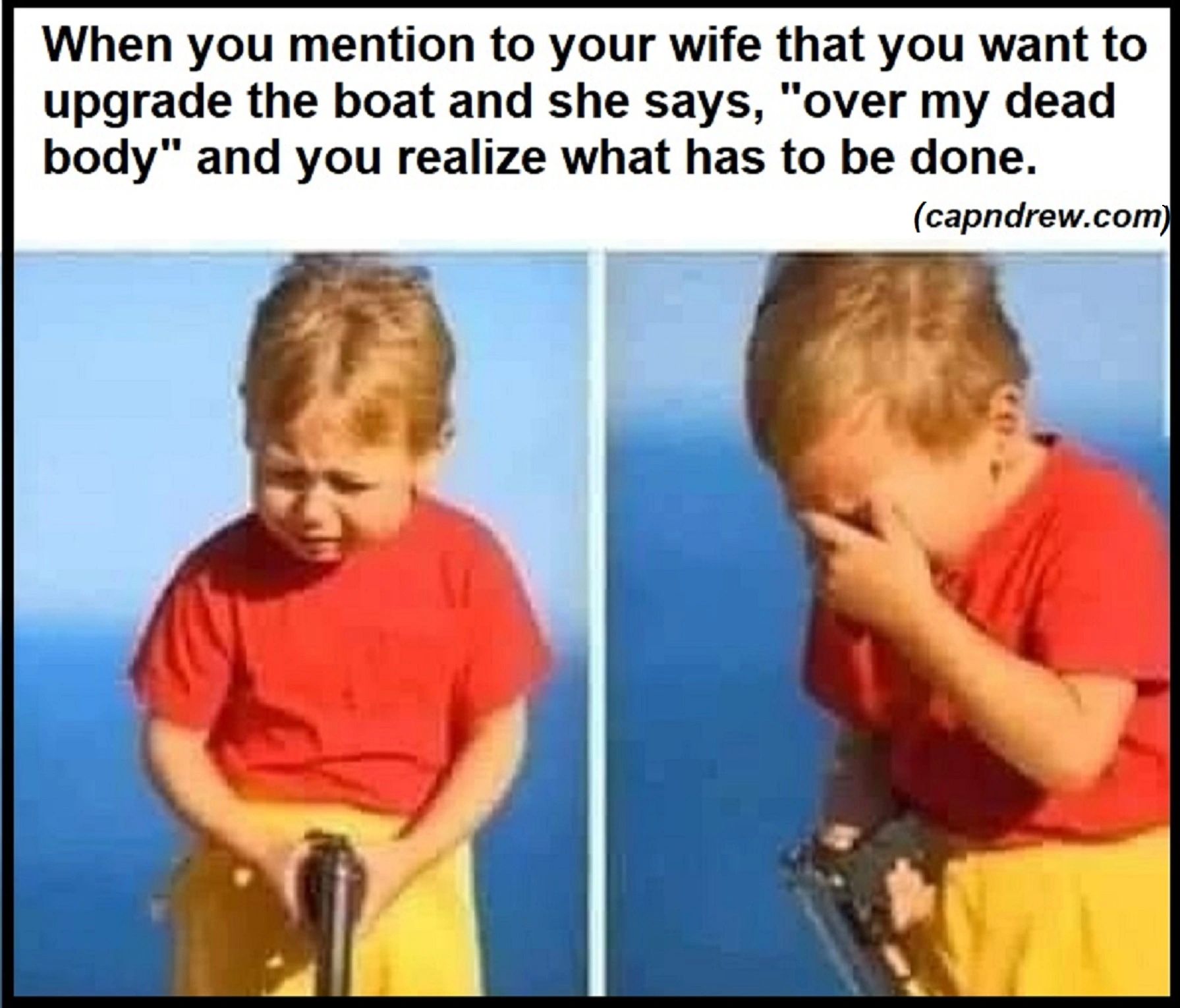 Years ago, being a boater was much simpler than it is today. In the boating of yesteryear, owning a personal watercraft meant that you didn’t have a partner. Drinking beer was encouraged, life vests were optional, and nobody gave a damn about the environment. Modern boating has become far more complicated. Today’s boaters must deal with complexities such as environment-friendly emissions, luxury tax, BWI, maceration laws and courtesy. Gone are the days of hopping on one’s boat and cruising off into the sunset without a care. Today’s boaters are expected to observe navigation rules, concern themselves with the safety of children, and pay for gas that costs more per gallon than French perfume. Therefore, we are not so much about boats as about boating. Hopefully a little boating humor will help boaters make more sense out of the little corner of the world in which we occupy.